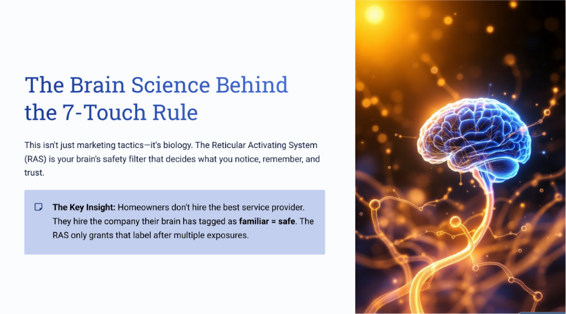 Growing inside a neighborhood becomes far easier when you understand how trust is built and how homeowners actually make decisions. Here’s how to apply the 7-touch rule to win more jobs with less marketing effort: